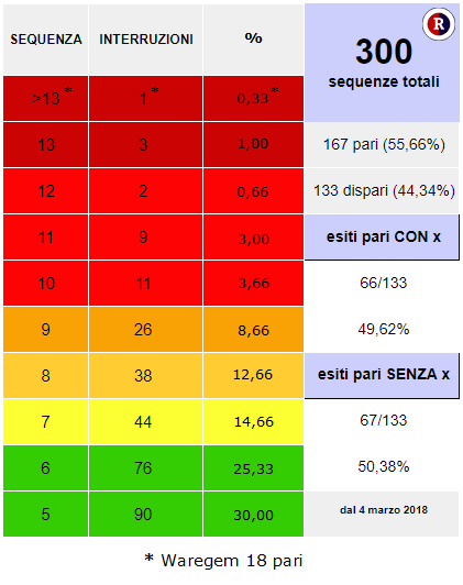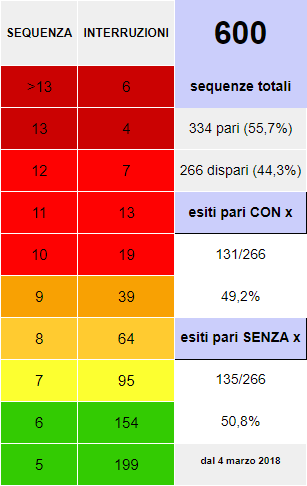 2) E' consigliabile giocare il segno opposto solo con una striscia da 8 eventi in su. In questo modo si ha una probabilità del 85,84% (calcolata su 791 eventi).